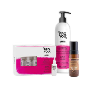 La protezione che il tuo colore merita. Con un balsamo ristrutturante, fiale nutritive e una mousse ecologica, questa box mantiene i tuoi capelli colorati vividi, sani e luminosi.